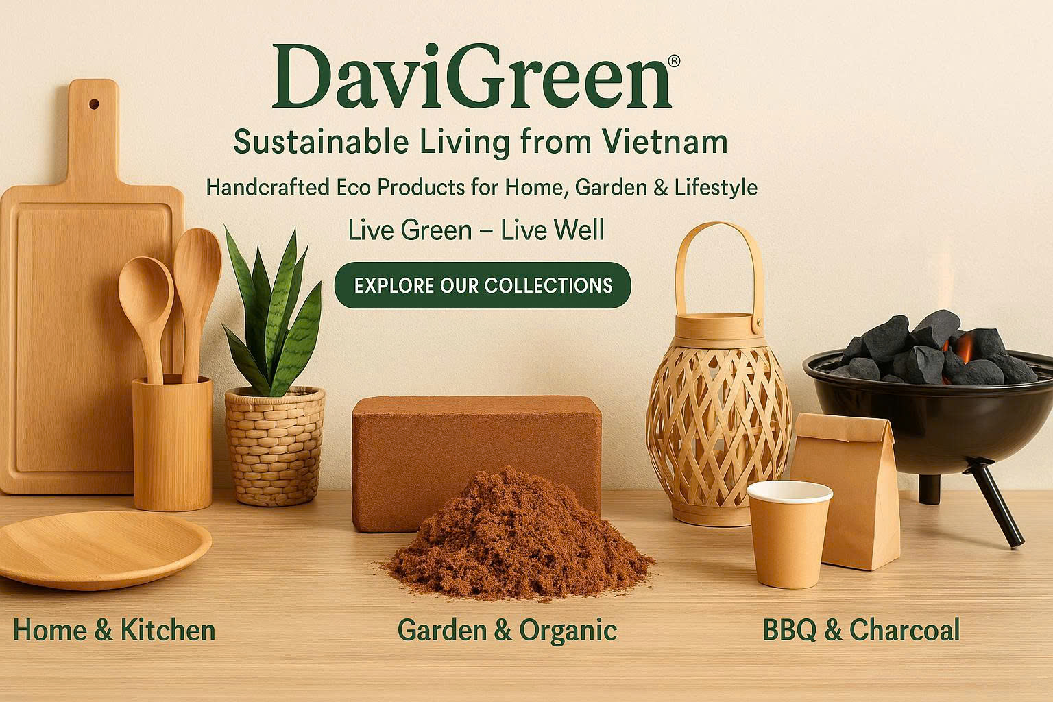 Every DaviGreen product – from bamboo cutting boards, steamers, wooden spoons to coconut shell charcoal and eco-friendly handicrafts – originates from nature, handcrafted with the skillful hands of Vietnamese artisans, and carries a vision of a healthier planet.
